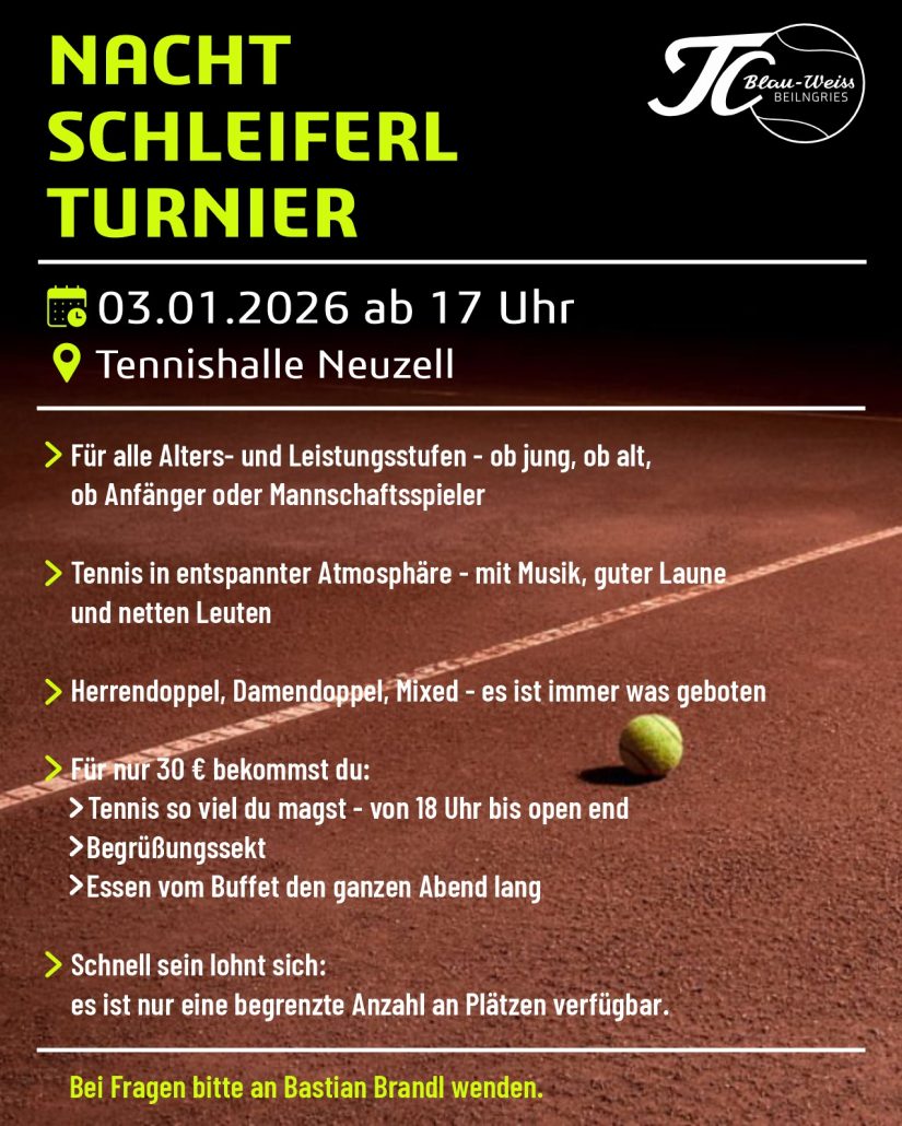 Details und Anmeldeinformationen tennisclub_beilngries Hallo liebe Tennisfreunde! #tennis #vereinsleben #club #beilngries #herzlichwillkommen #match #gemeinsam Am 10.01.2026 findet wieder unsere Skifahrt statt. 🎉 Happy Birthday, liebe Gwen! 🎾💐 Heute ha Vielen Dank @tennis.berching für die Nominierung. Schon wieder so ein erfolgreiches Wochenende: Sieg Erfolgreicher Auftakt in diesen Spieltag: Unsere U Die Herren 40 sind am Samstag zu Gast bei Post SV Ein weiterer Spieltag liegt hinter unseren Mannsch 5:4 Sieg auswärts in Herrieden…… Feiern konnt Durch die großzügige Unterstützung der @rohmann Am Donnerstag, 01. Mai starten wir nochmals offizi 🩵 Bei dem Wetter steigt die Vorfreude auf die T Mehr laden Auf Instagram folgen